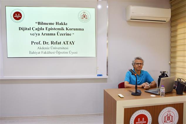 “Mesleki Eğitim Konferansları” kapsamında Akdeniz Üniversitesi İlahiyat Fakültesi Öğretim Üyesi Prof. Dr. Rıfat Atay hocamız, Diyanet Akademisi III. Dönem Aday Din Görevlilerine “Bilmeme Hakkı, Dijital Çağda Epistemik Korunma ve/ya Arınma Üzerine” başlıklı bir konferans verdiler.